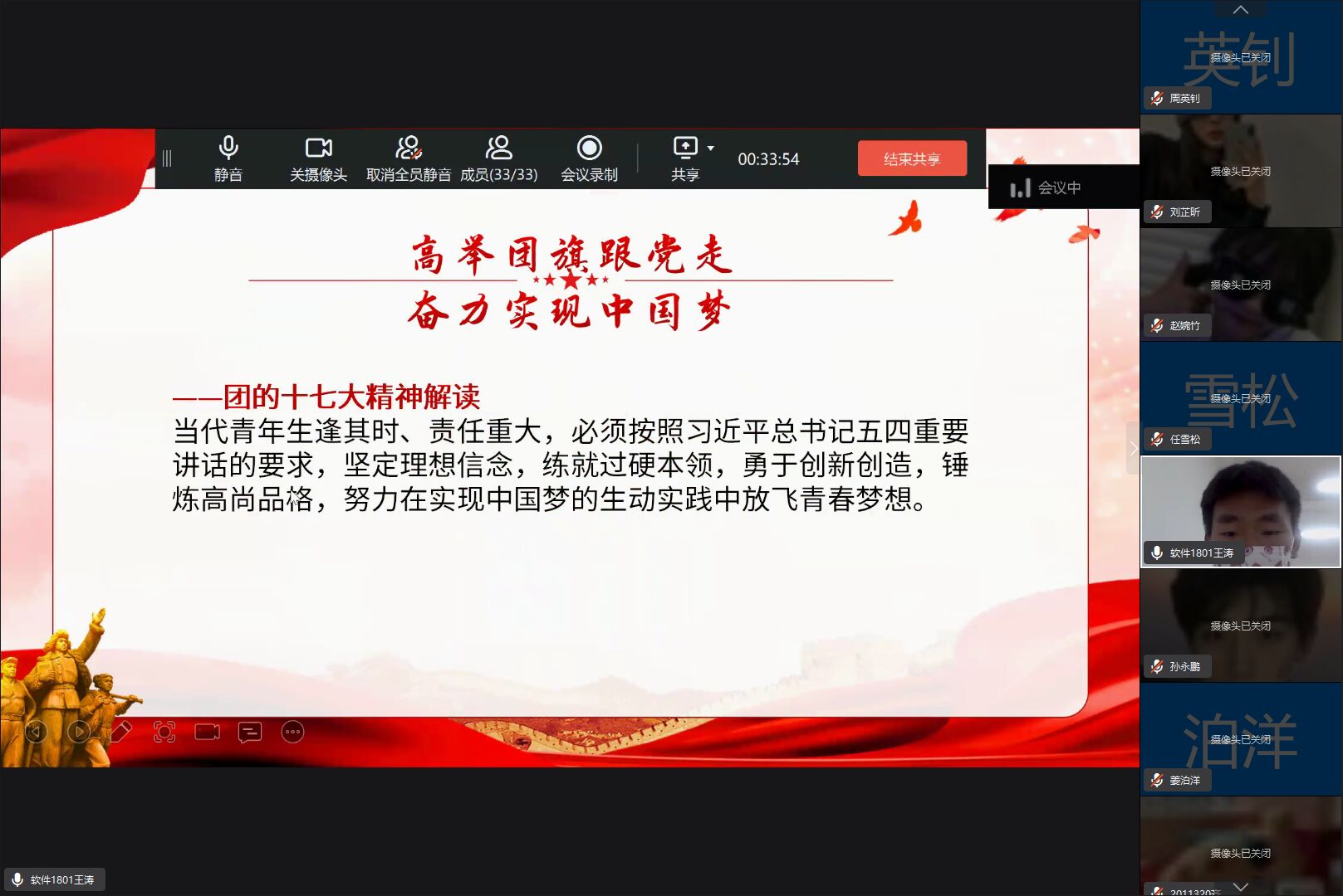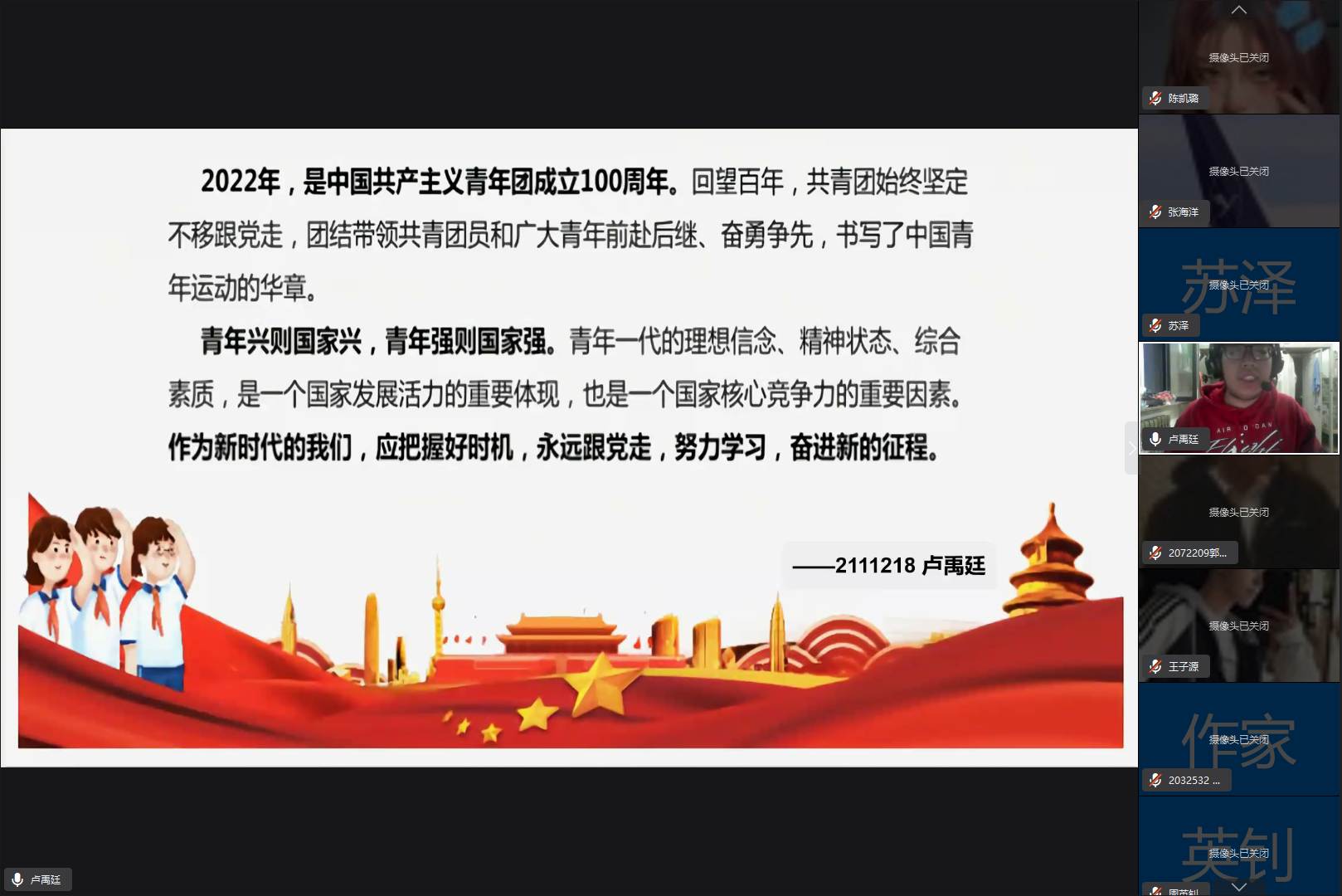 本次活动以钉钉线上形式举办,参赛同学准备充分,演讲富有感情,充分展现了对中国共产主义青年团的热爱,将自己对共青团的赞美之情、对先烈的感激之情表现得淋漓尽致。流利的演讲,坚毅的眼神,精美的PPT,把现场气氛一次又一次推向了高潮,台下不时响起热烈的掌声。经过激烈的角逐,最终北方黄金珠宝学院王涛同学获得一等奖;材料工程系李祖熠同学、北方黄金珠宝学院任雪松同学获得二等奖;信息工程系王子源同学、材料工程系邰锡来同学、华孚仪表学院苏泽来同学获得三等奖;华孚仪表学院姜泊洋、机械工程系张海洋等9名同学获得优秀奖。